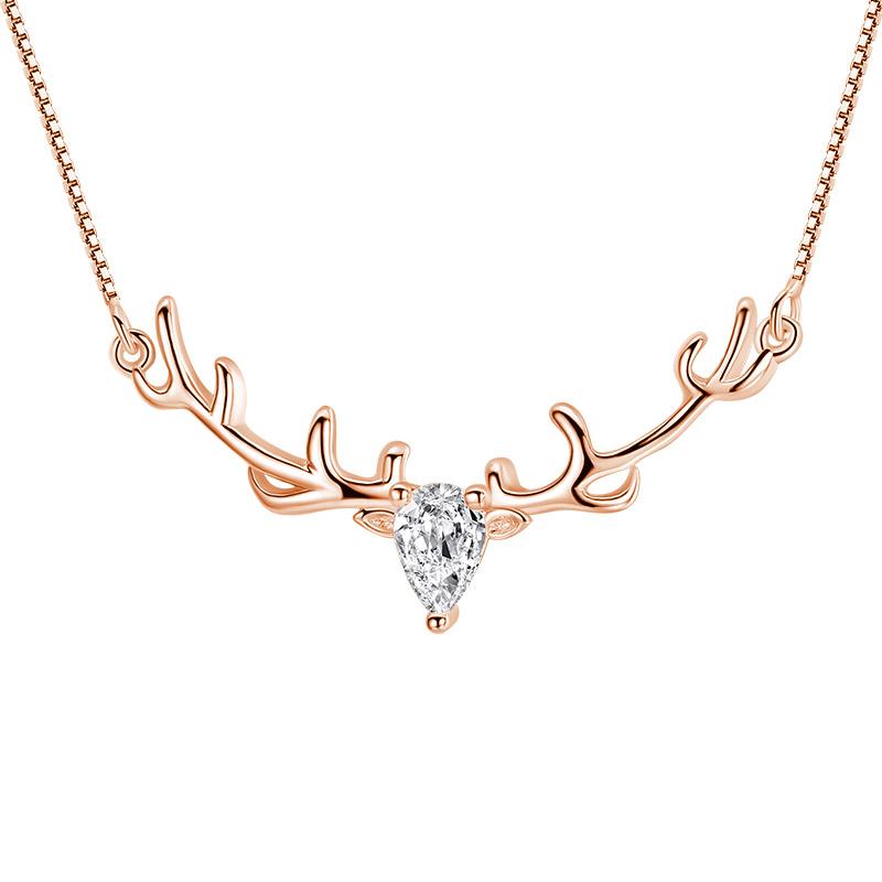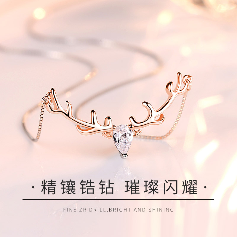 Dust Seine Six Heinea deer with you necklace female silver plated 18k rose gold elk antlers white collar OL collarbone chain birthday laity