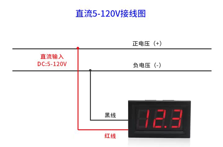 Two-wire DC voltmeter DC5-120V voltmeter DC digital display head indicating display reverse connection protection
