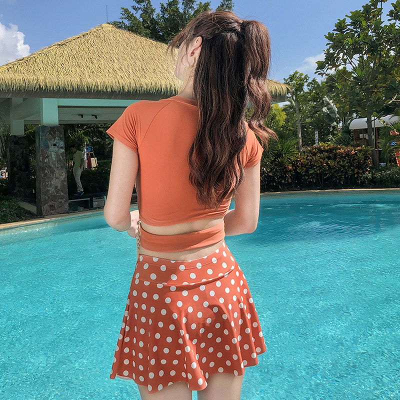 Swimsuit women 2022 new explosive sexy two-piece flat corner belly thin Conservative big size soak hot spring swimsuit