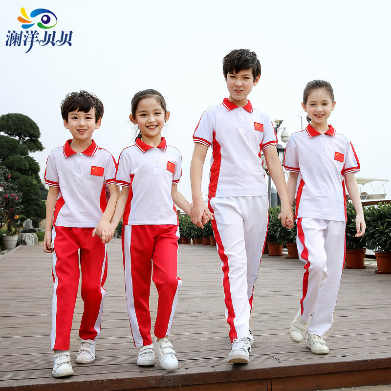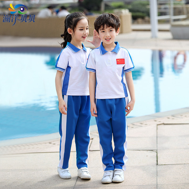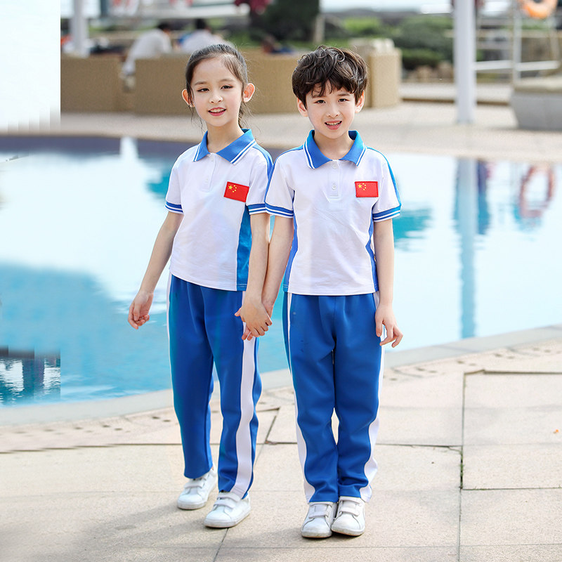 Junior high school students spring and summer new school uniform suit primary school students short-sleeved trousers sports casual blue and white class uniform kindergarten uniform