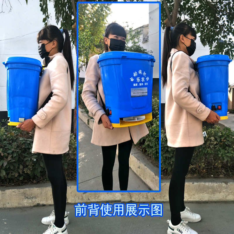 Piggyback electric fertilizer applicator fully automatic sprinkling rice wheat agricultural thickening seeder fish pond feeding bait machine