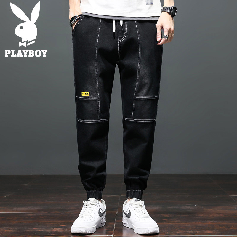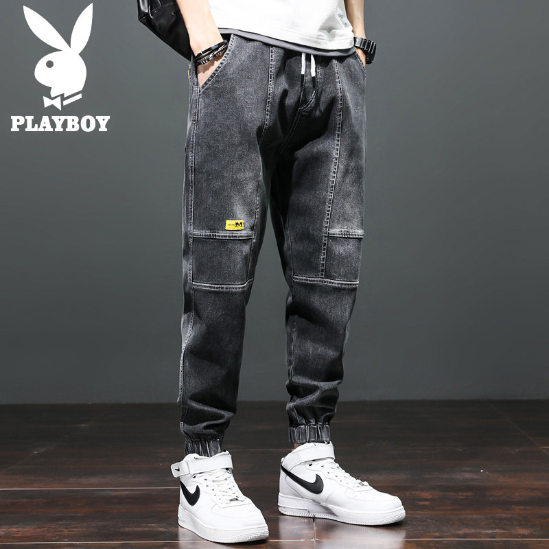 Playboy jeans men's autumn black Korean style loose casual all-match straight all-match long pants