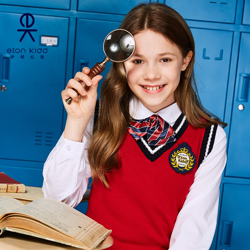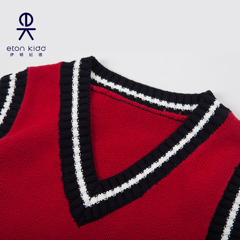 Eaton Guild school uniform red Tibetan white bar knit vest boy Spring and autumn college vest waistcoat 09B111