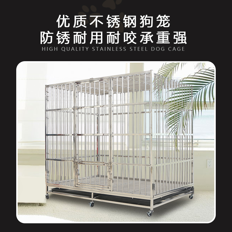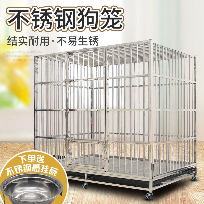 Folding stainless steel dog cage Medium Large canine Labrador Indoor plus coarse pet cage Small dog with toilet