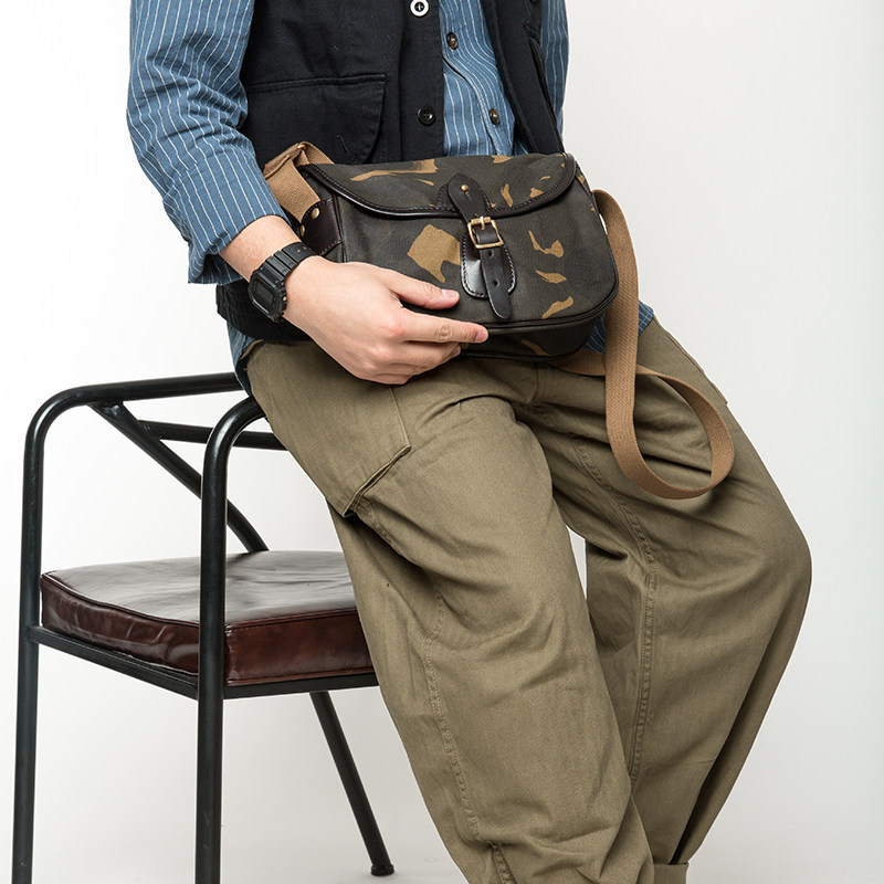 (Pointed goods)Heavy oil wax retro camouflage canvas bag men's fashion shoulder messenger bag portable small messenger bag