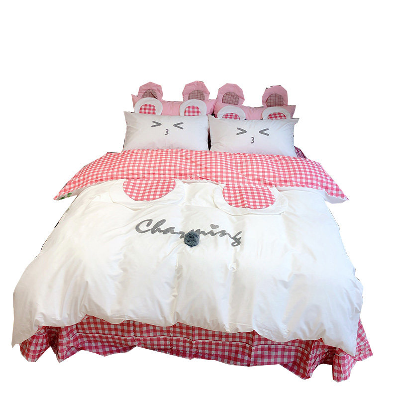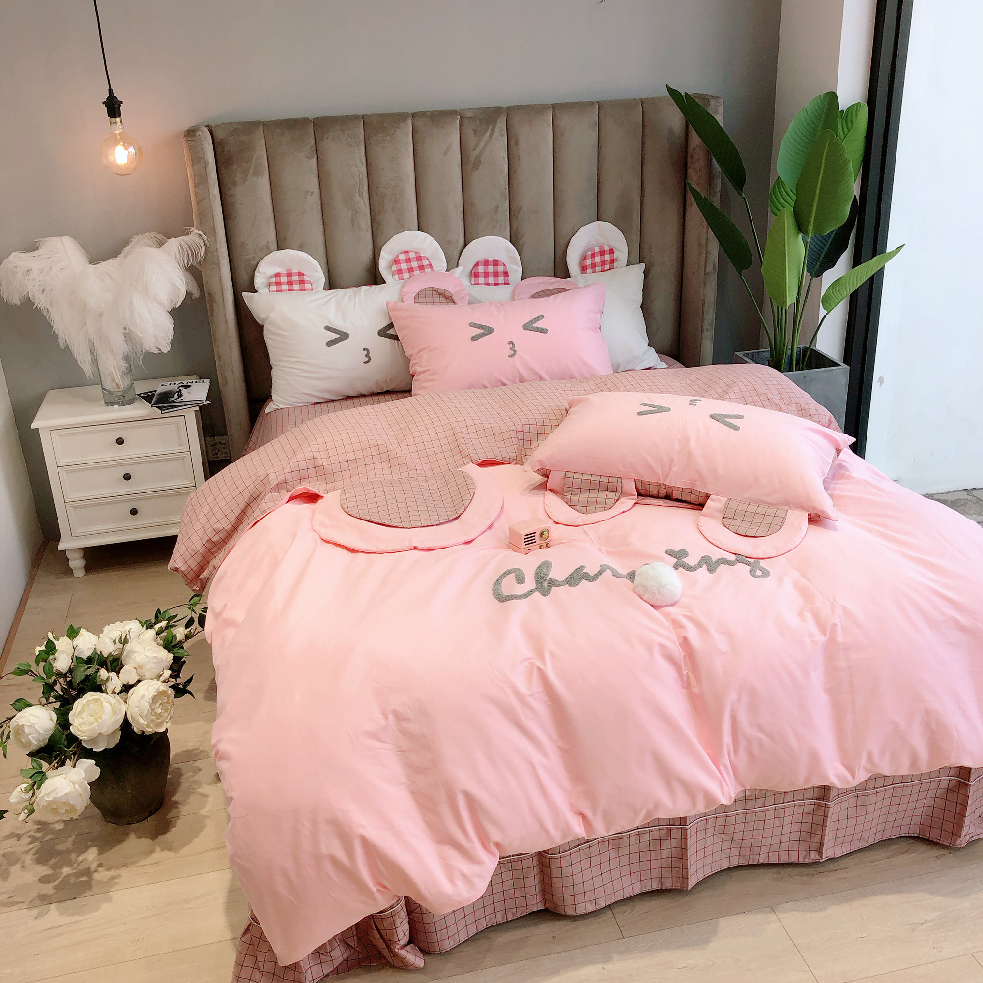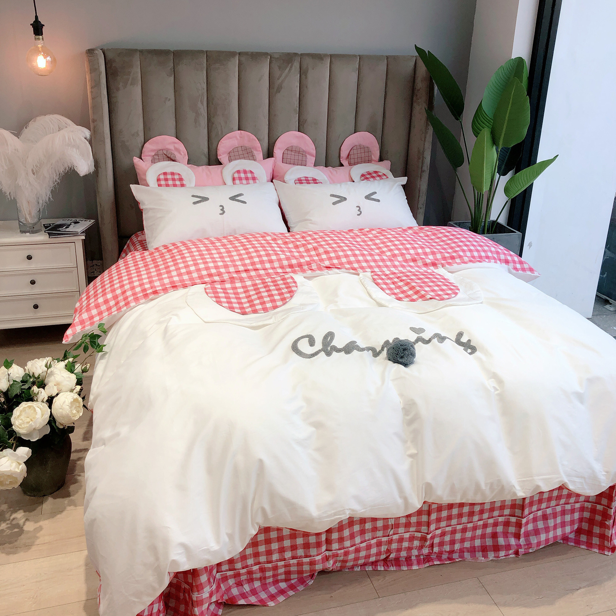 ins four-piece bed set net red cottoncotton pure cotton quilt cover single double princess wind lotus leaf side bed supplies