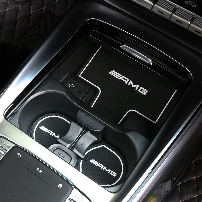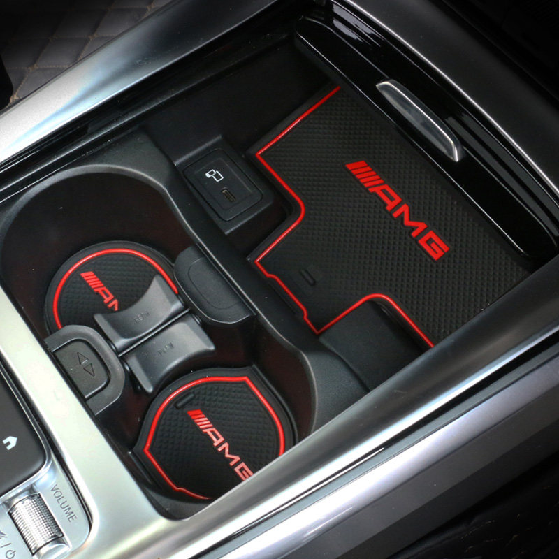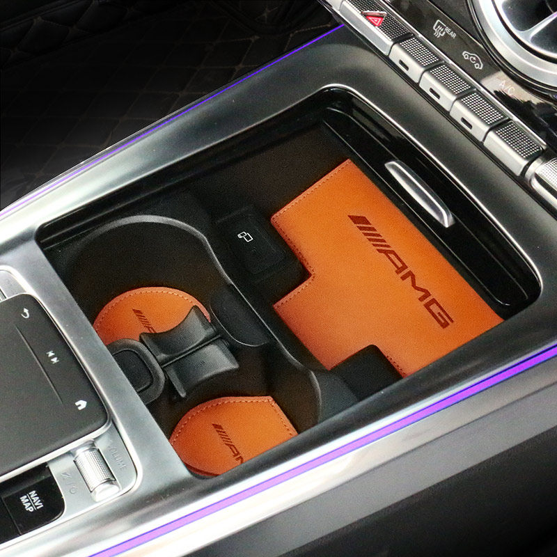 Mercedes Class A CLA Silicone Groove Mat (Red Edge -11 Set) Mercedes Class A CLA Silicone Groove Mat (White Edge Luminous -11 Set) Mercedes New Class A Leather Water Cup Mat (Black