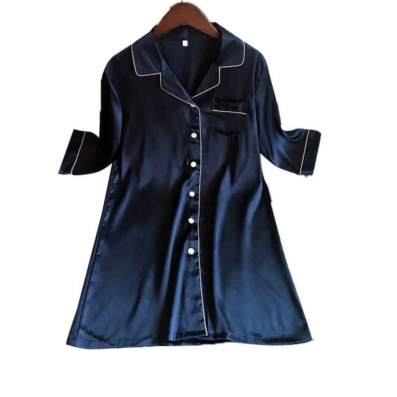 White shirt sexy pajamas women's ice silk thin nightdress women's summer cardigan shirt Korean version 2022 new