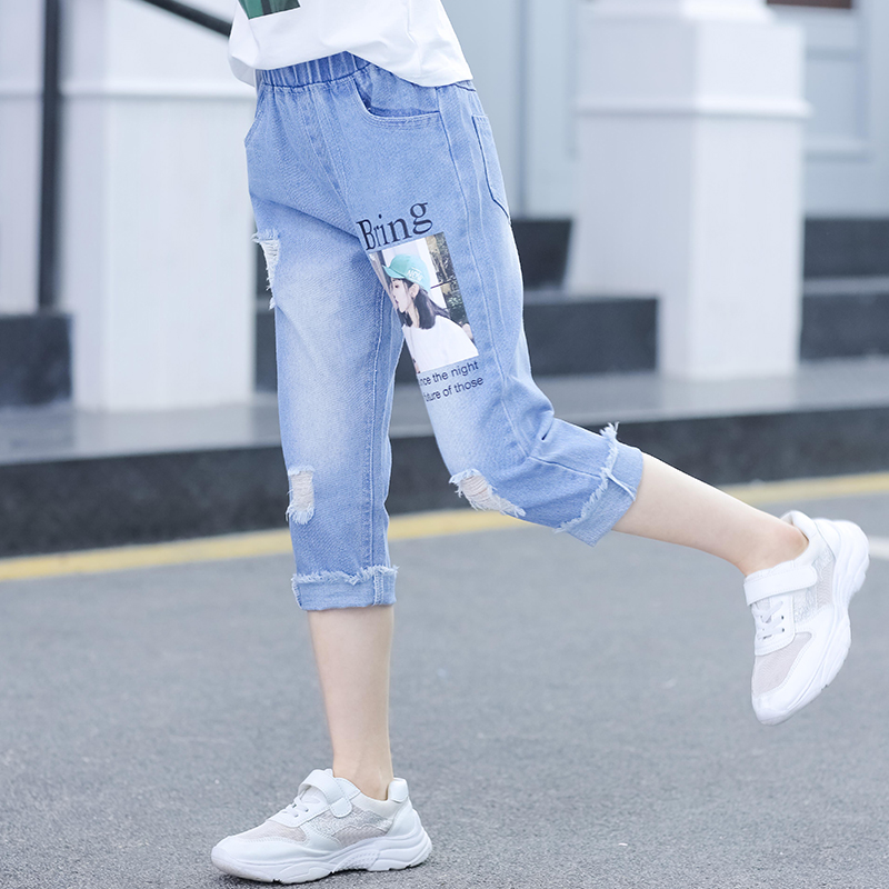 Girl Jeans Seven Pants 2022 Summer Dress New 7 CUHK Tong Slim Fit 8-12 50% Pants Girl 10-15