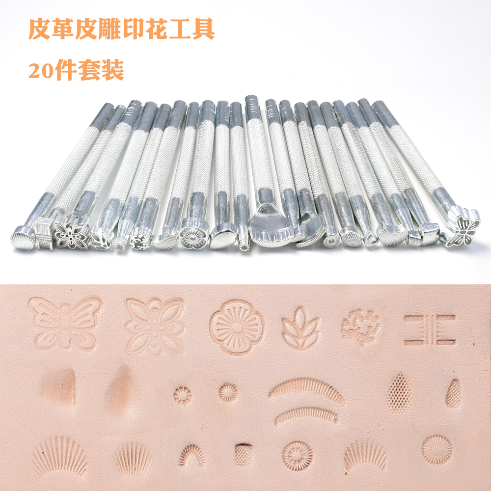 Leather Carving Printing Tools Handmade DIY Leather Goods Leather Vegetable Tanned Leather Hand Carved Leather Carving Tool Printing 20 Pieces
