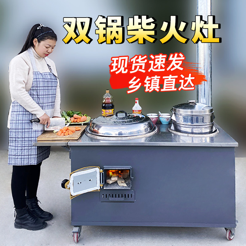 Rural firewood stove Home burning wood burning wood Indoor smoke-free large pot Terraces mobile double-mouth gas stove table outdoor energy saving firewood stove