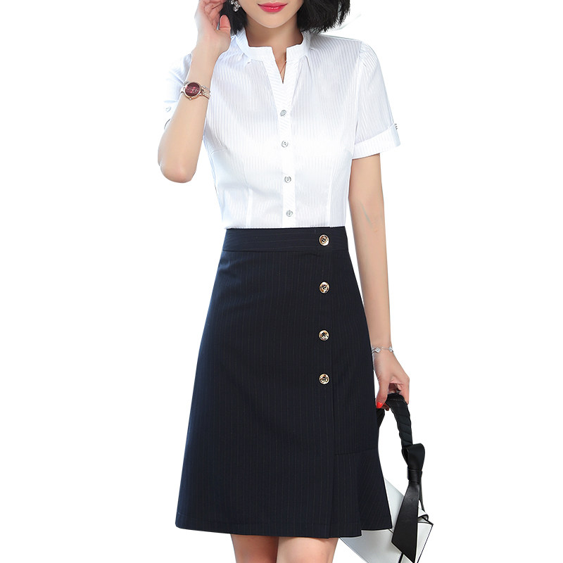 Career shirt suit two pieces of female Xia Yuan Xiaoyuan Xiaoxiang Xiaoxiang Xiaoxiang 2020 new fashion striped short sleeve suit