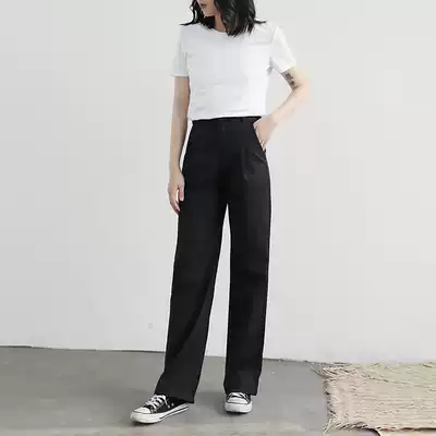 Wide leg pants female Korean summer high waist drape straight suit pants loose casual simple drop feel mopping trousers