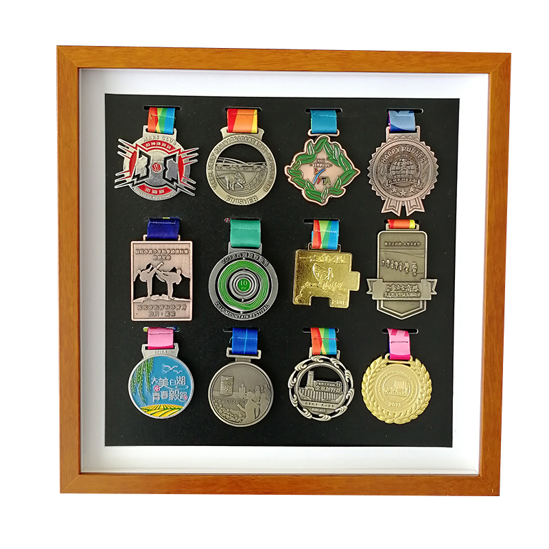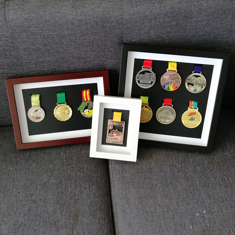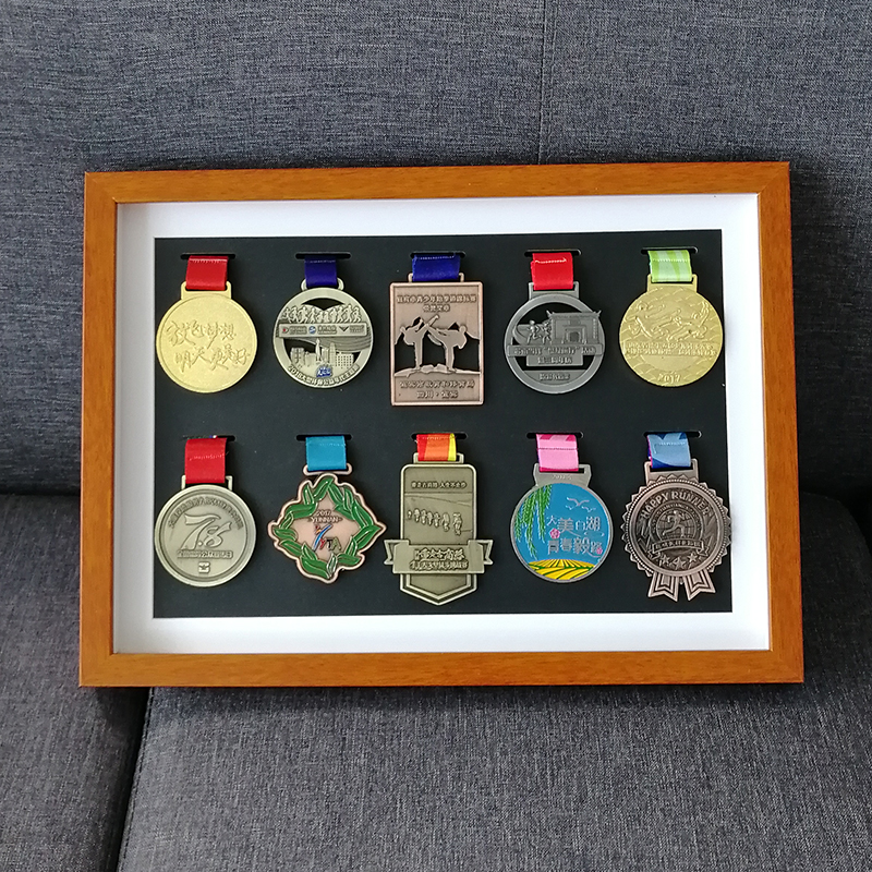 Solid wood marathon medal display frame hanging wall custom balance car KEEP medal photo frame storage box framed frame