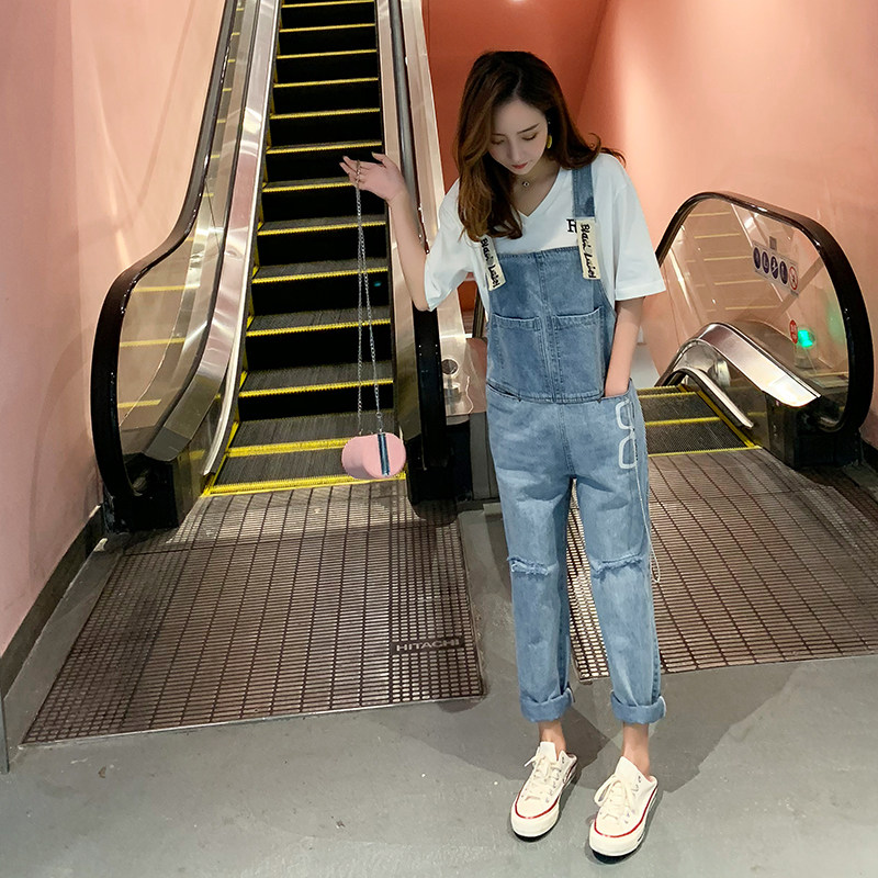 2022 Summer new embroidered cowboy hug bag pants lady Korean version loose slim fit slim harness even body pants