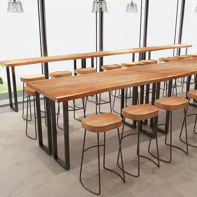 American solid wood bar table against the wall long table bar bar Nordic simple modern High Table Table Table and Chair combination iron art