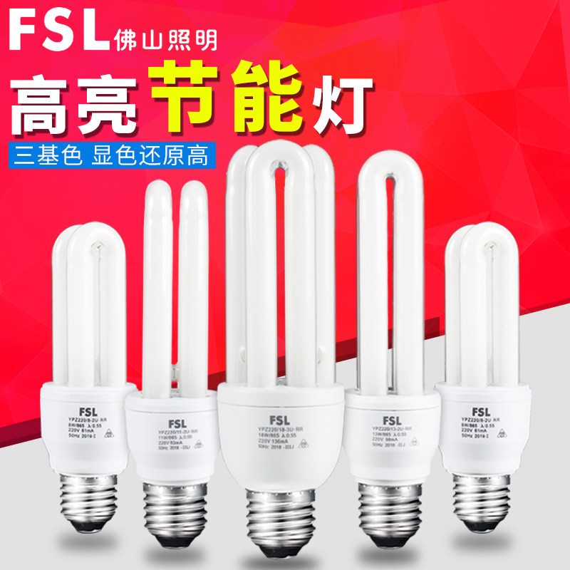Foshan lighting energy - saving bulb e27 screw 2U straight tube three - color fluorescent lamp 3U household T4 electronic fluorescent lamp