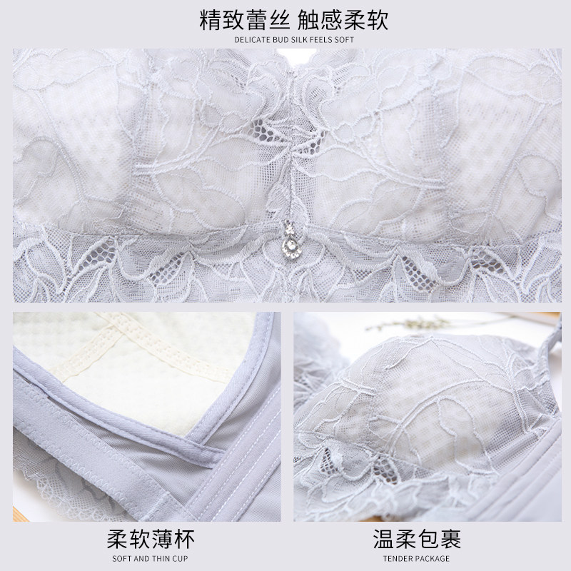 Underwear women's big chest is small without rims to close the breast Ultra-thin section gathered on the support bra cover anti-sagging large size fat mm