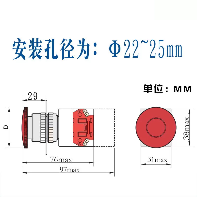 Positive Tay Mushroom Head Button Self-Reset Start Button Switch Emergency Stop head NP4-11M 1