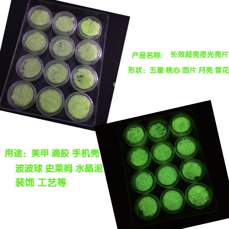 Net Red Long-lasting Hair Bright Five Stars Loving Beauty Nail Cell Phone Protection Shell Luminous Bright Sheet Printed Drip Glue Diy Material Luminous Powder