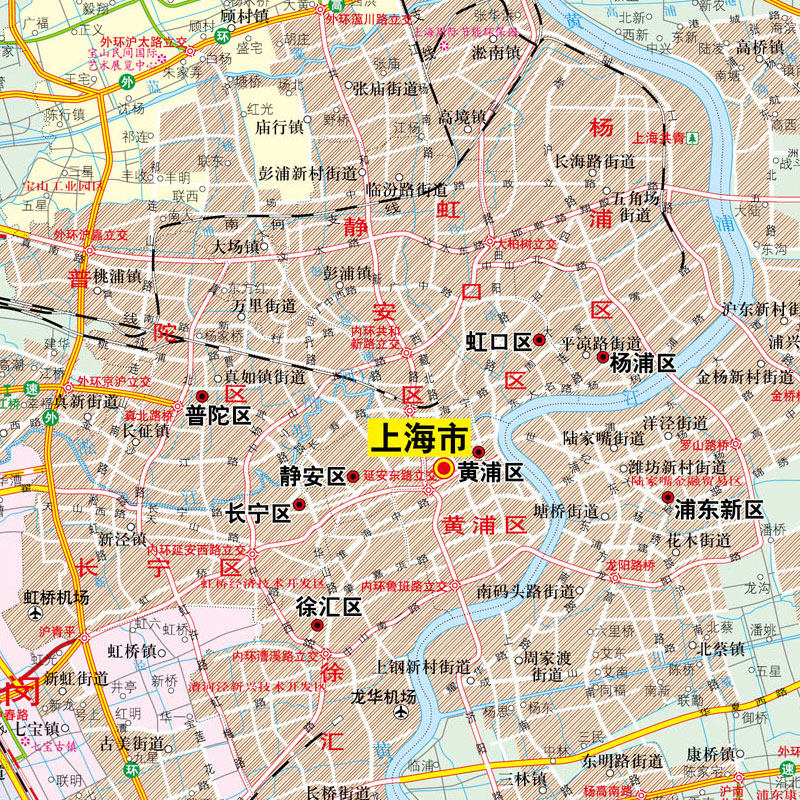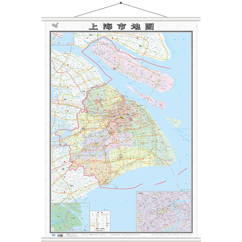 (fine clothing with hanging rope) 2023 New version of Shanghai Map wall chart 1 1x0 8 m Office hanging painting Shanghai Jiaotong District-Taobao