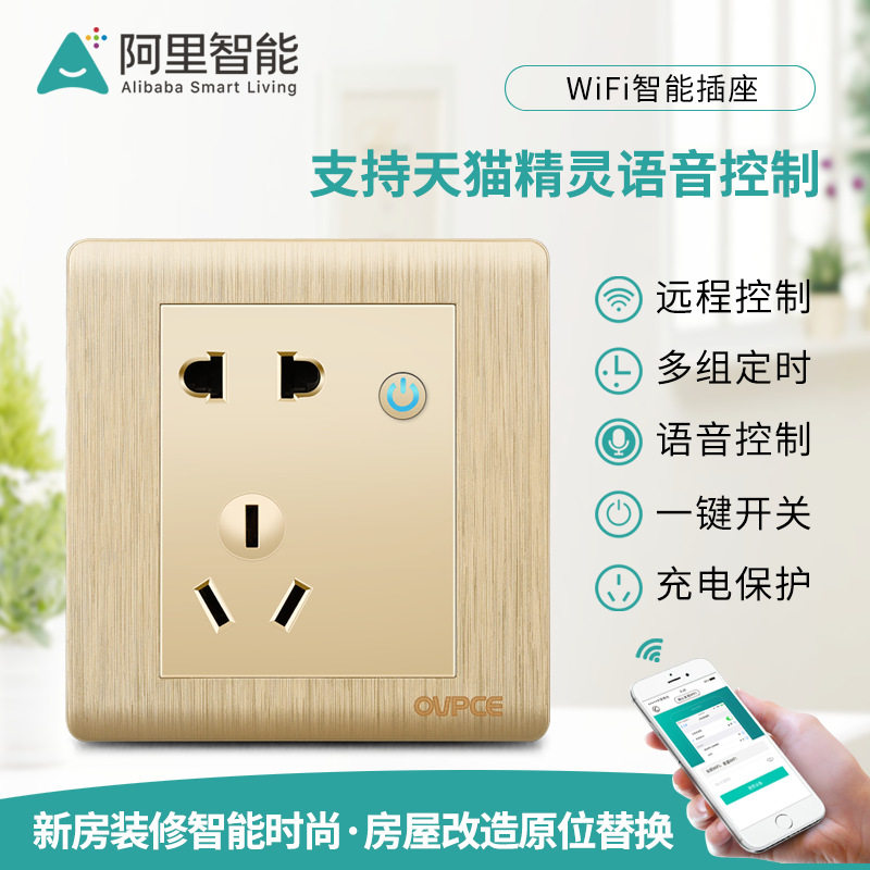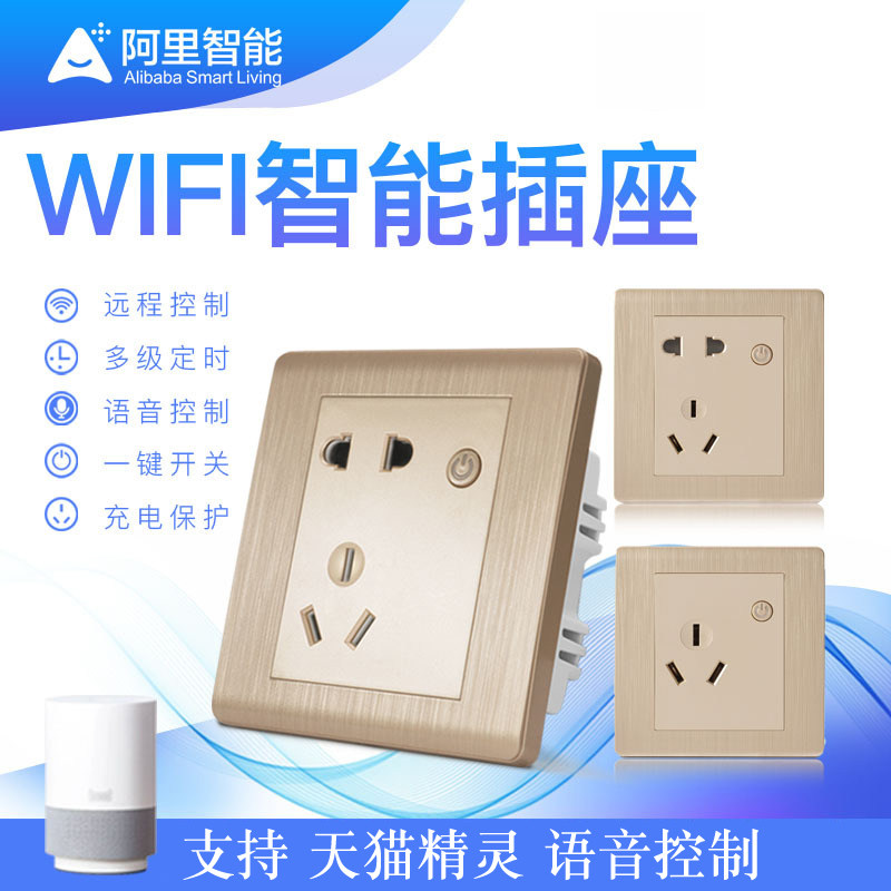 Ali 86 Socket Champagne Gold WiFi Remote Timed Remote Control Sky Cat Elf Voice Control Panel Smart Socket