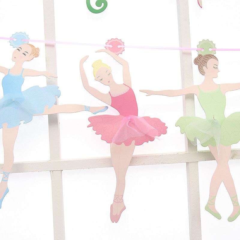 Birthday party decoration flower princess ballet dance girl pull flag Canvas strip pennant pull flower flower fairy bunting