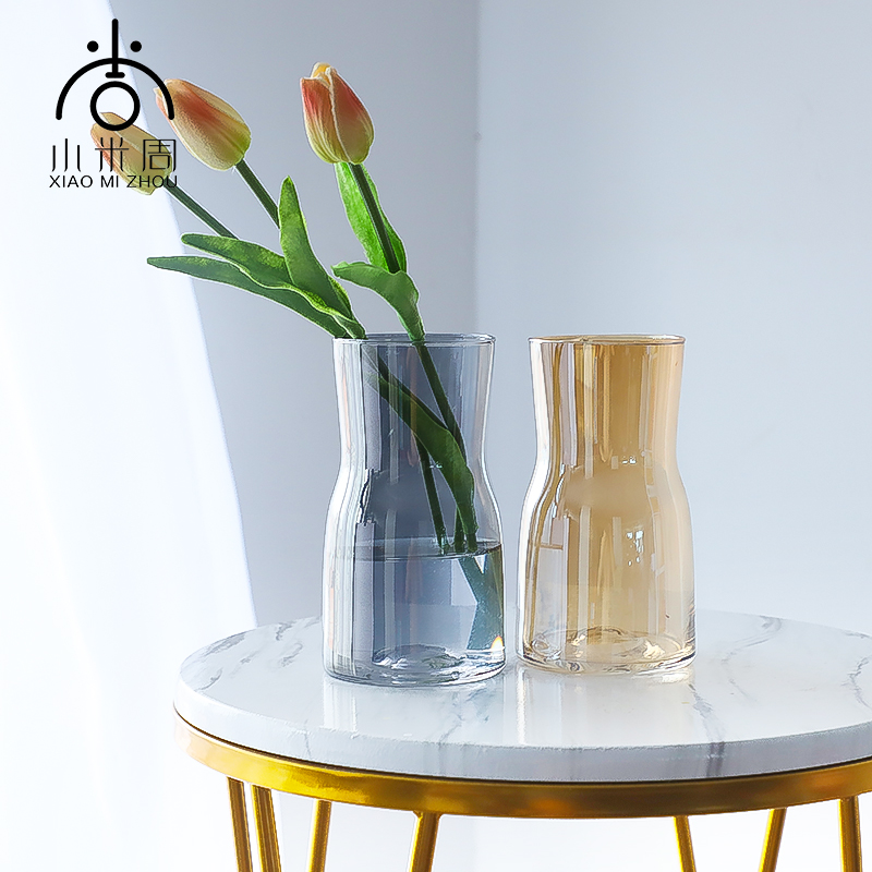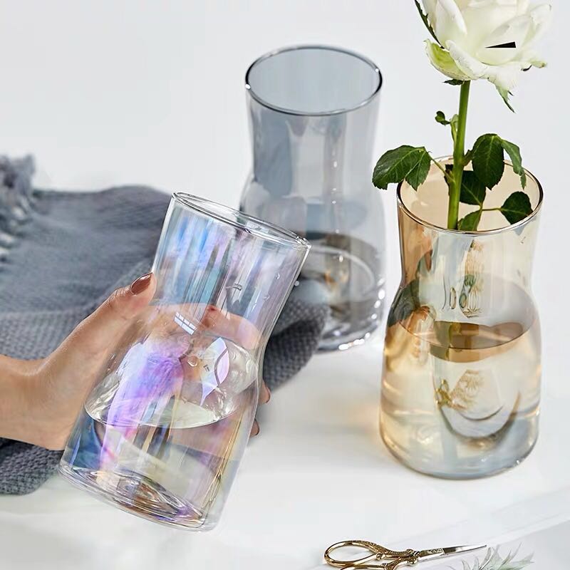 Wide mouth minimal vase glass gold flower garden gradient fantasy handicrafts fresh desktop