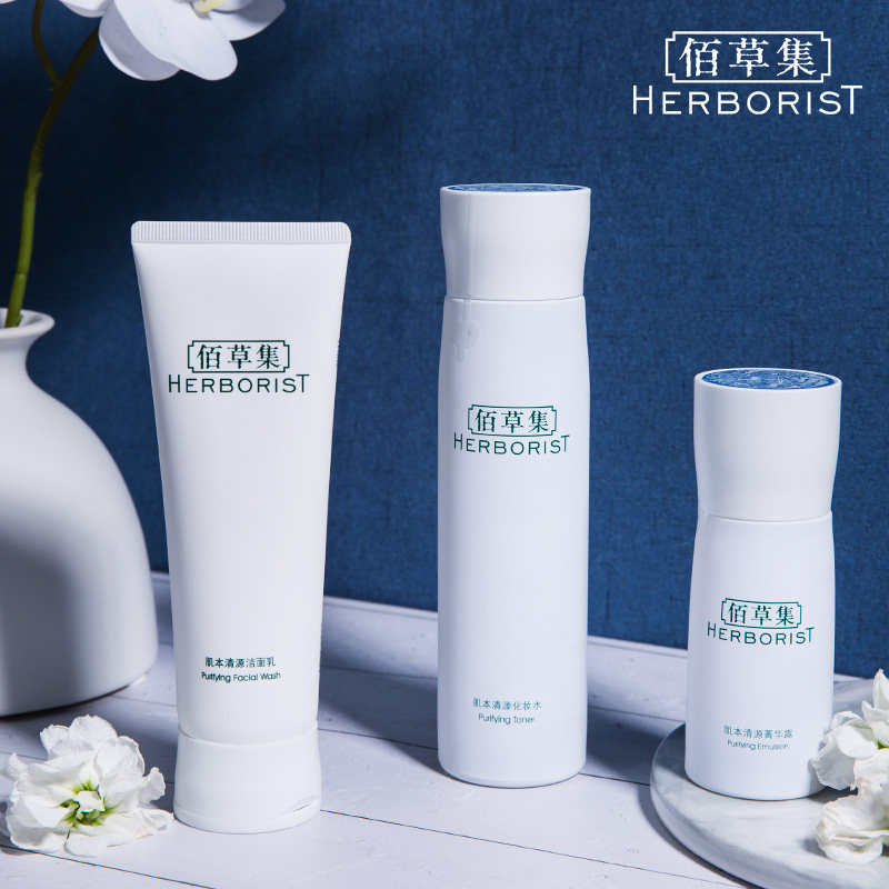 White grass set oil control and hydration set official flagship store Water cream skin acne skin herbal skin care products women