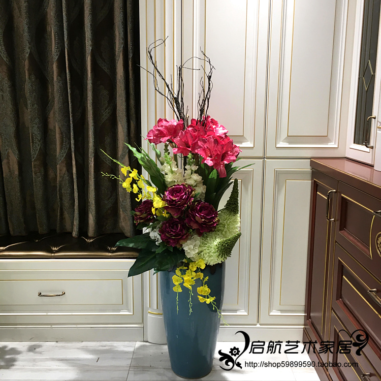 Jingdezhen floor-to-ceiling large vase simulation flower art set porch living room decoration ornaments fashion crafts flower arrangement