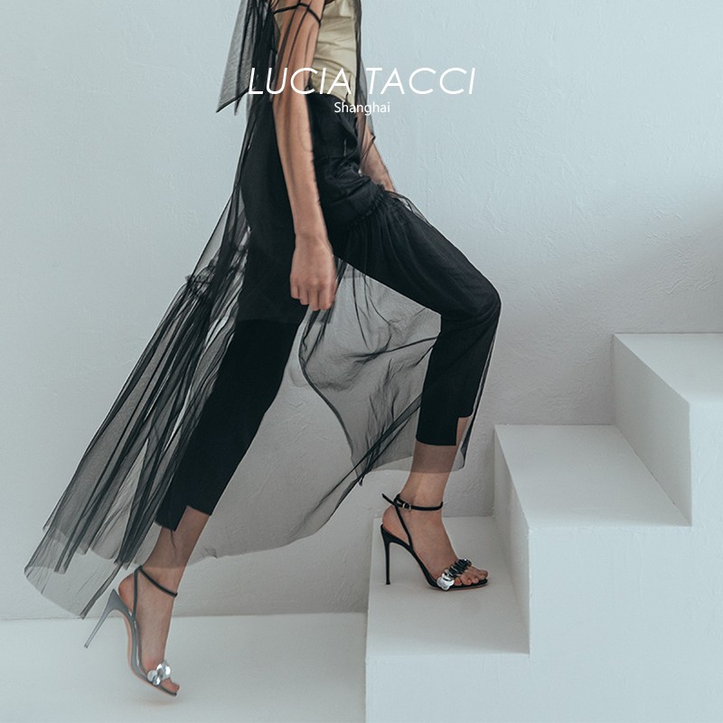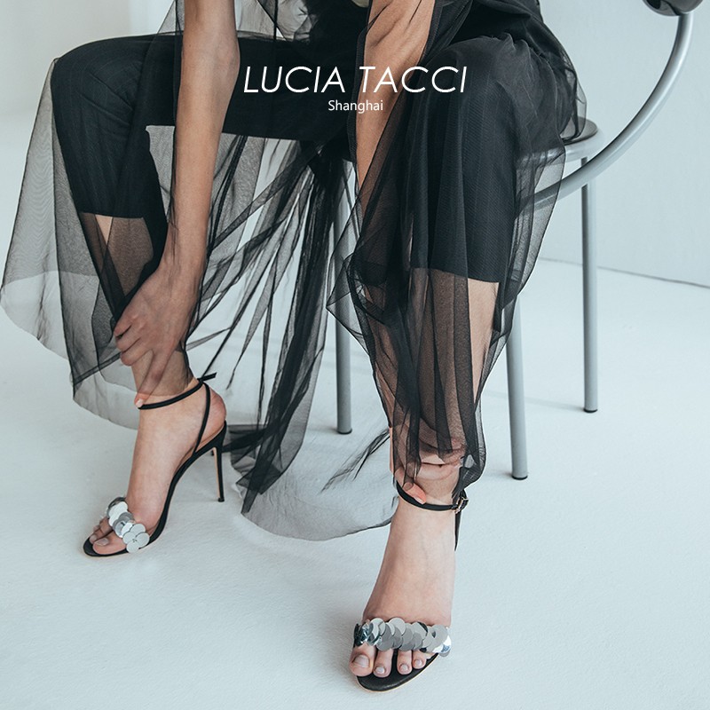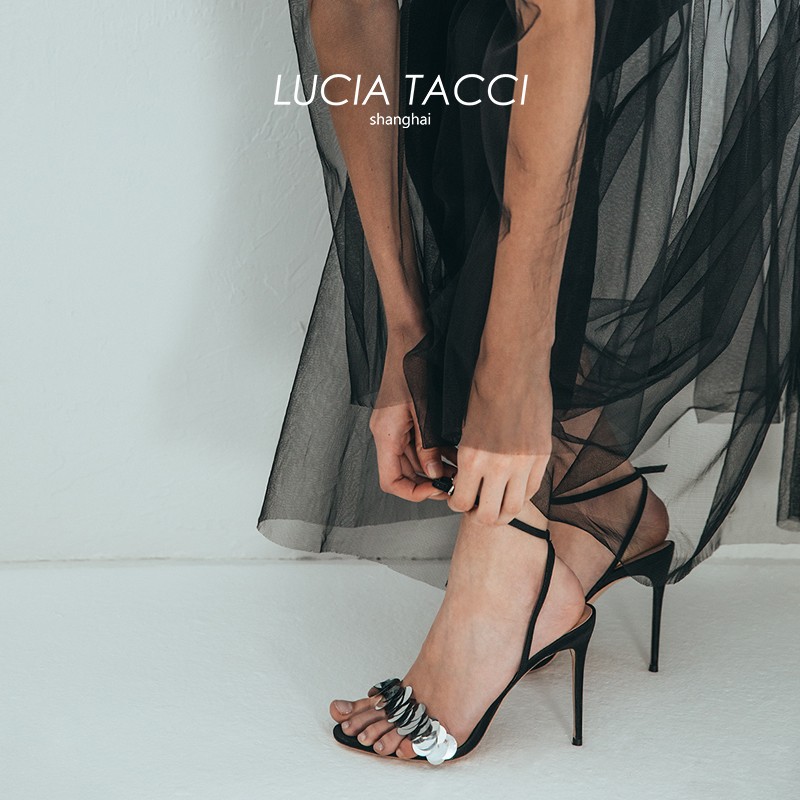 LUCIA TACI red carpet high heel original design black satin lined with dinner occasion Sandal Women