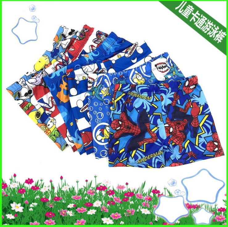 Children Swimsuit Pants Boy Cartoon Flat Corner Swimming Pants Fashion Low Waist Tightness Laces Beach Swimming Trunks