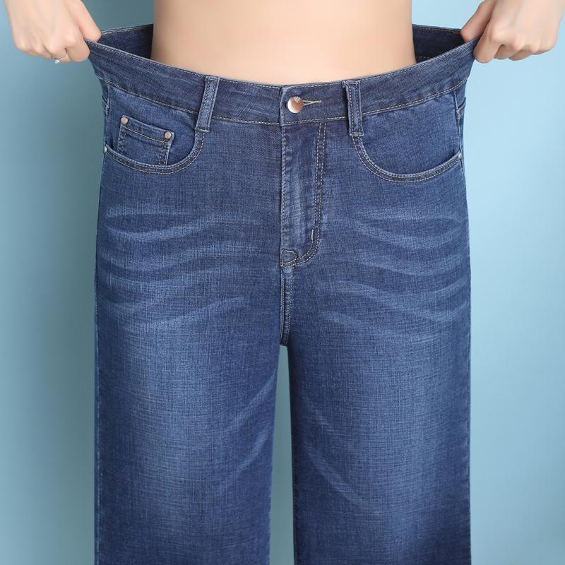 Seven-point jeans women's 2021 summer thin new elastic slim thin large size nine-point loose straight wide pants