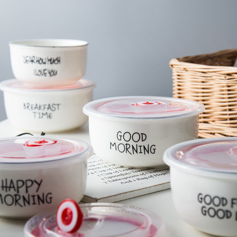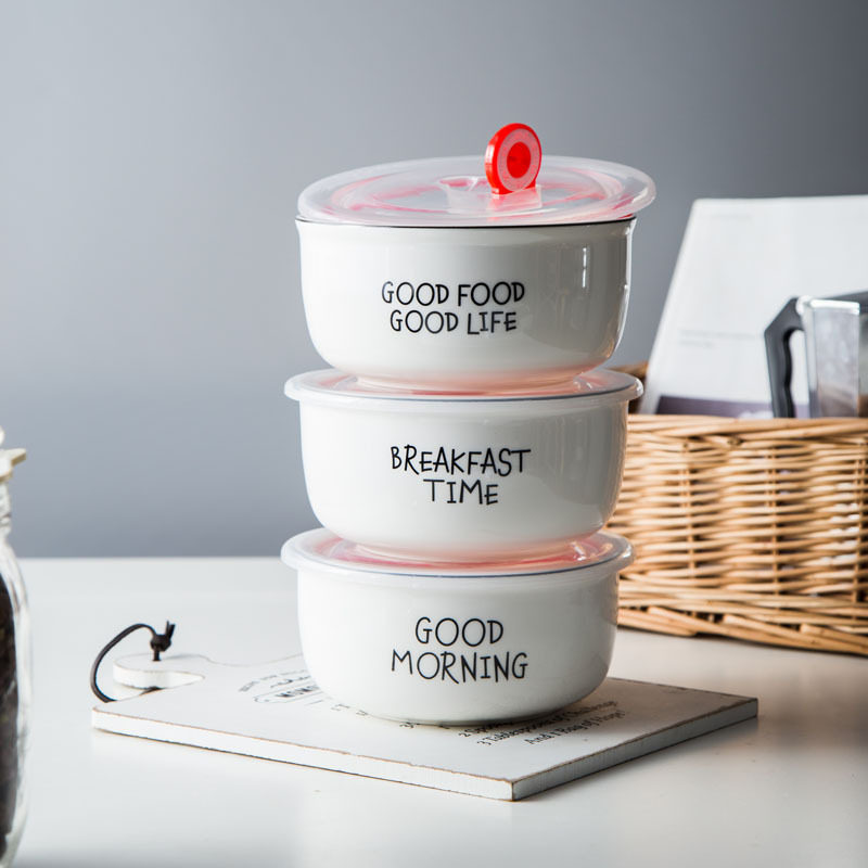 Food grade IKEA vacuum fresh box large capacity with cover microwave oven heating ceramic fresh bowl round seal