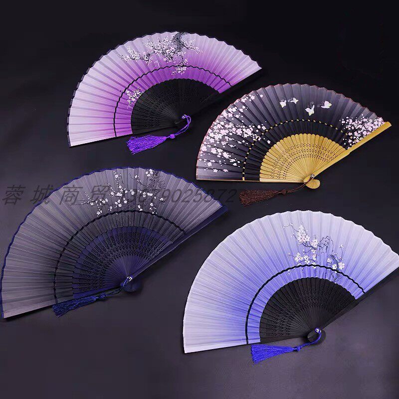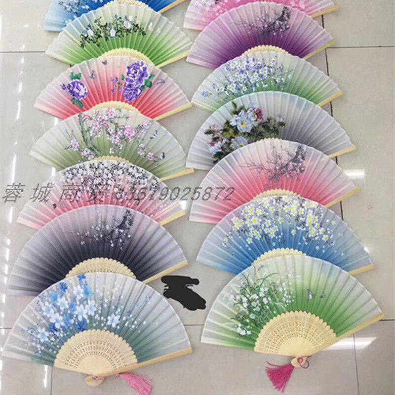 China Wind Silk Cloth Process Folding Fan Gift Ancient Wind Dancing Small Fan Decorative Fan Vintage Folding Fan Dance Props
