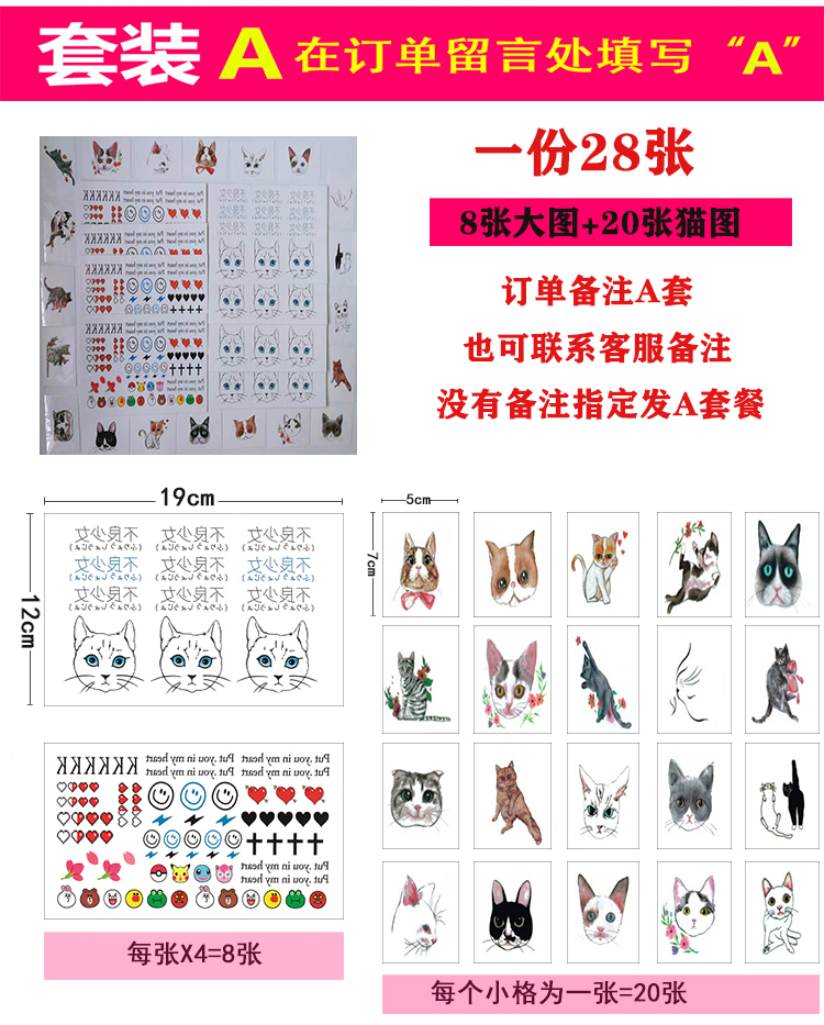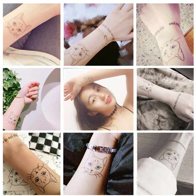 Bad girl ins style waterproof tattoo stickers Lin Xiaozhai net red cat letters cute and lasting tattoo designs