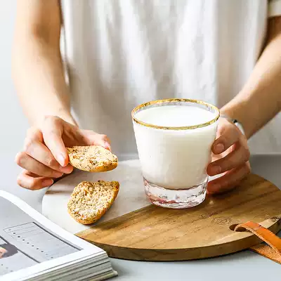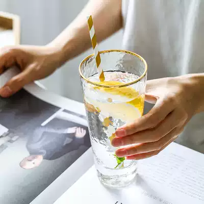 Chao Mu gold edge hammer transparent high-end glass household big mouth glass ins Wind straw water cup simple Cup