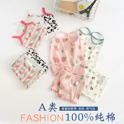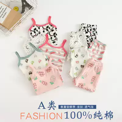 Girls Set Thin Summer Baby Sling Baby Sling Shorts Two-piece Children's Cotton Home Clothing Children's Casual Pajamas