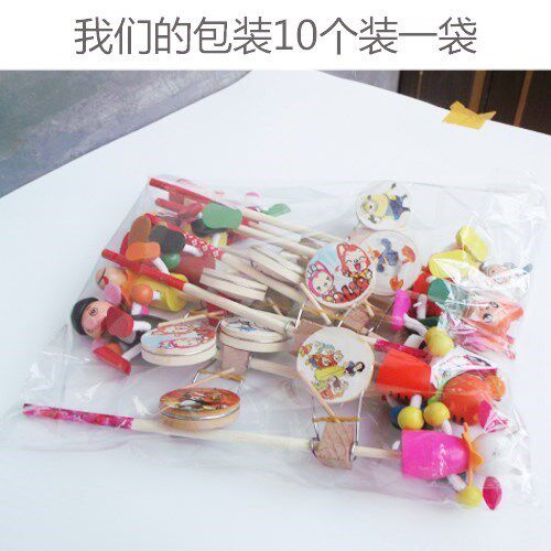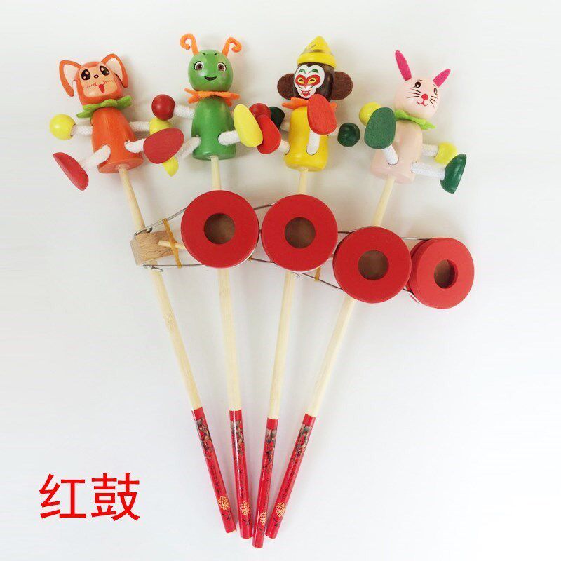 Temple Fair Summer vacation bursting with wooden wooden heads people shake the drums and happy puppets shake up the toy heat and sell them for the hot sale