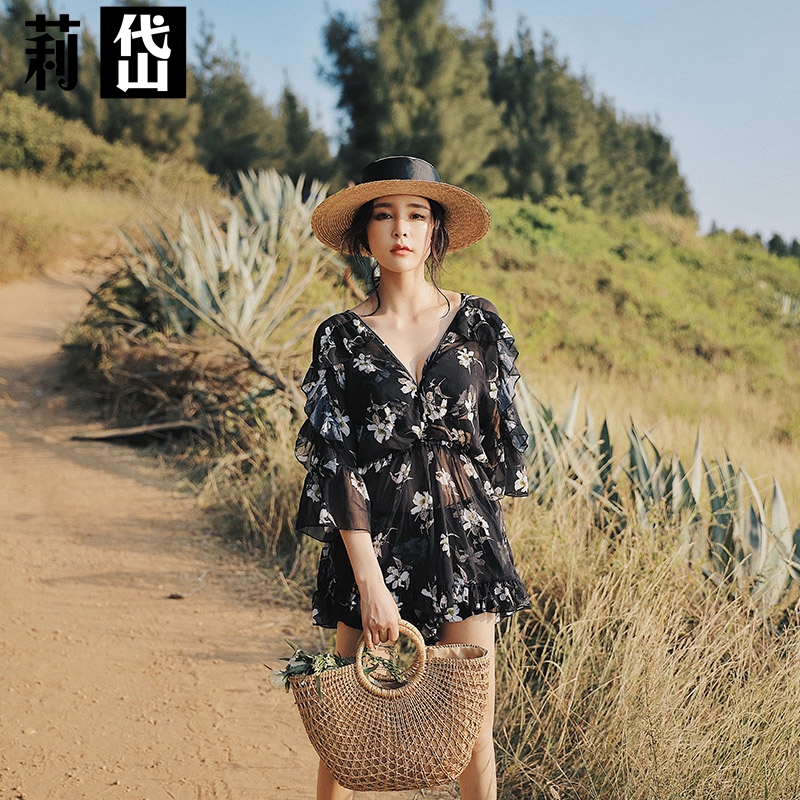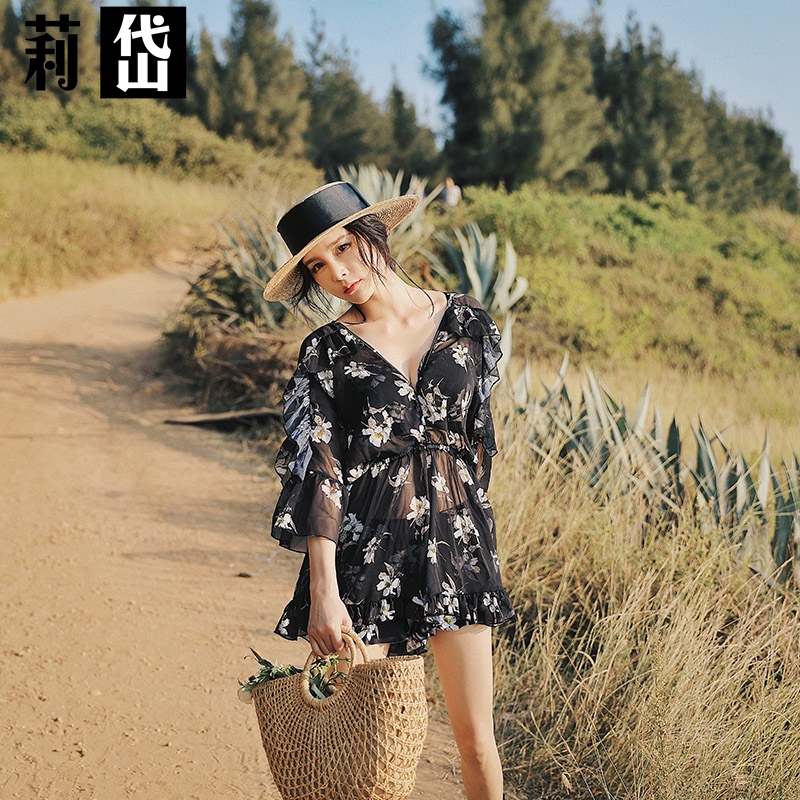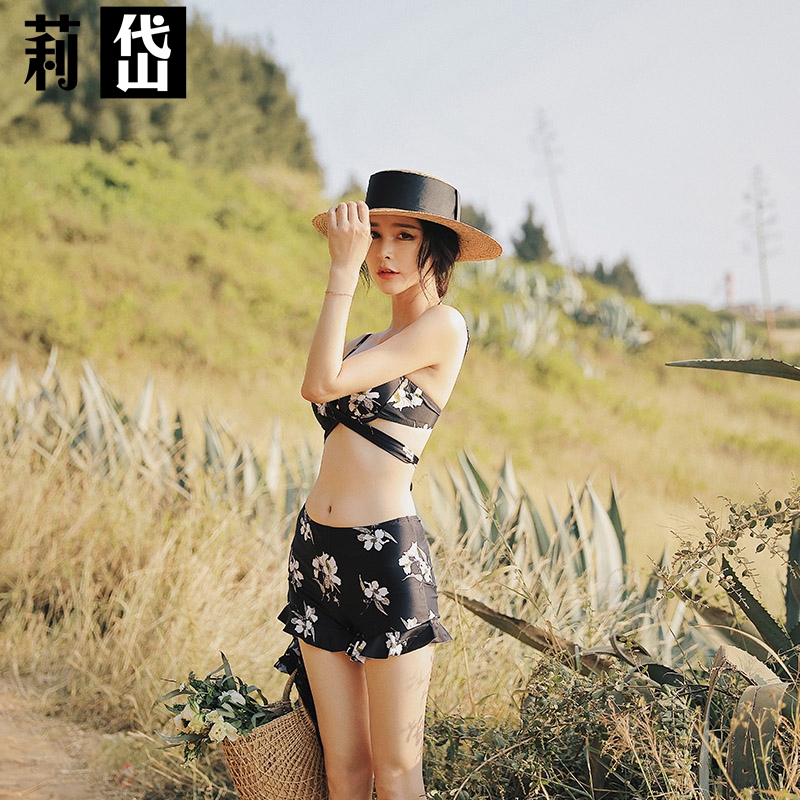 Swimsuit women's summer 2020 new three-piece set super fairy size chest gathered conservative cover belly thin hot spring swimming suit