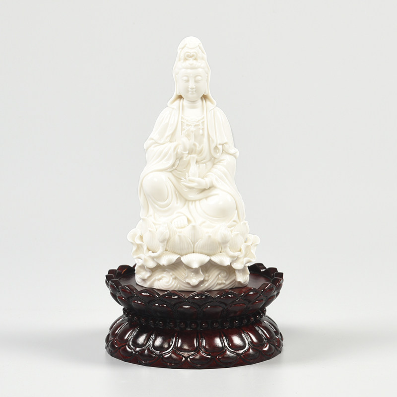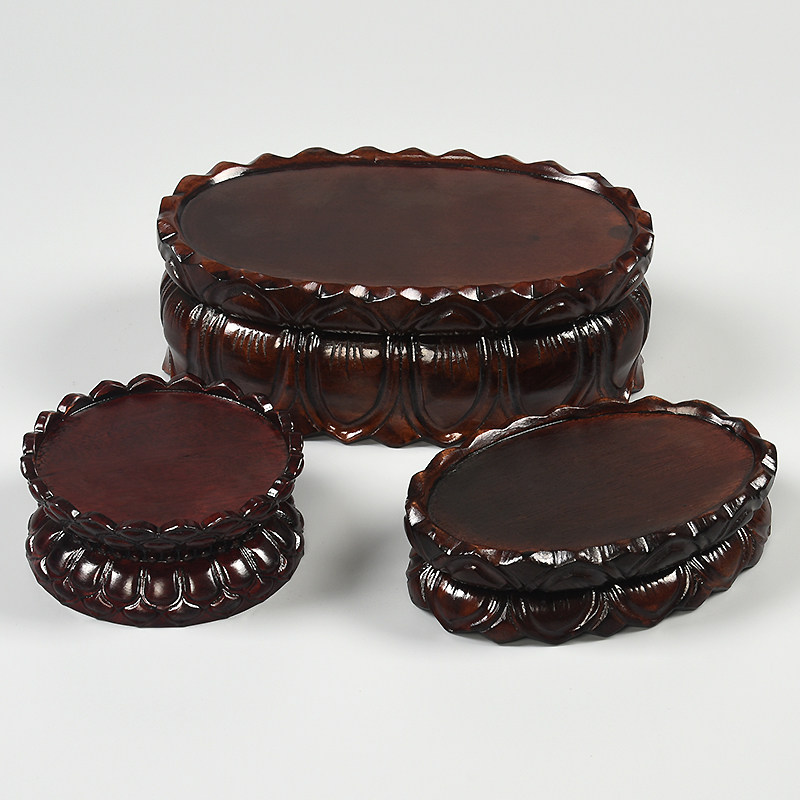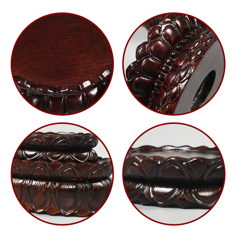 Solid wood carved Guanyin lotus Buddha statue round base craft gift decoration strange stone antique bodhisattva oval rectangular base custom