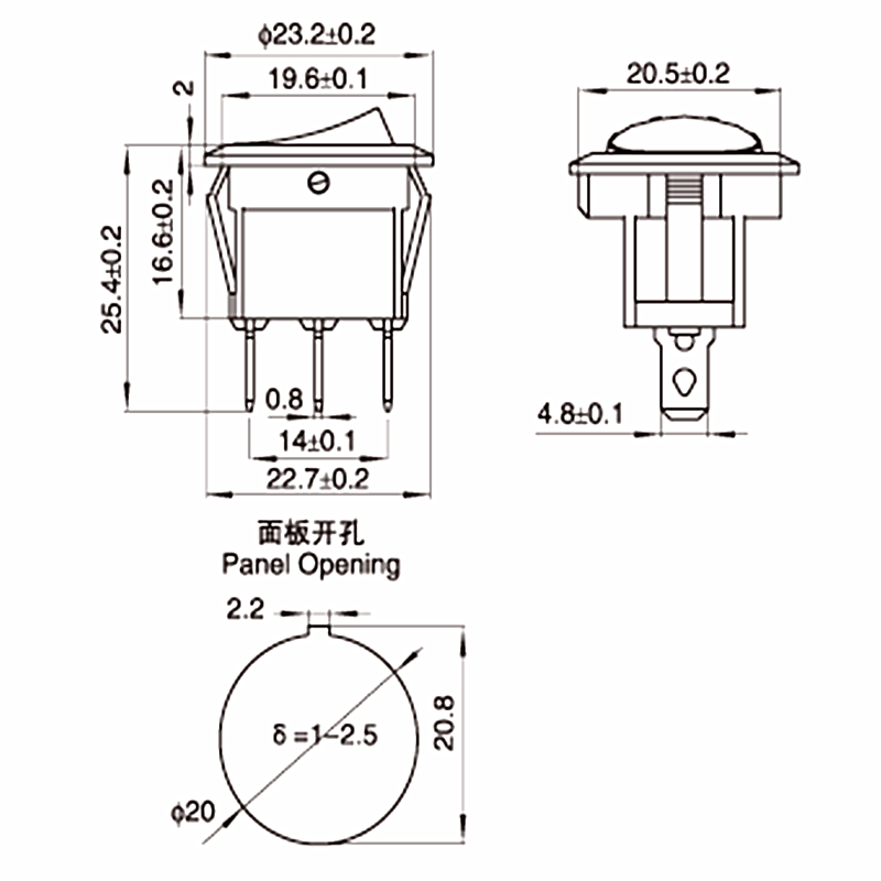 12V ship type round switch with cat's eye light LED light two gear rocker power switch 3 pins 2 gears opening 20mm