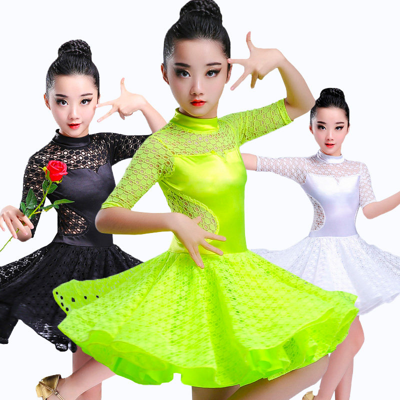 Young girl girl's Latin dance competition art exam rules for standard lace hollowed-out big swing foreign dress performance out of sleeve
