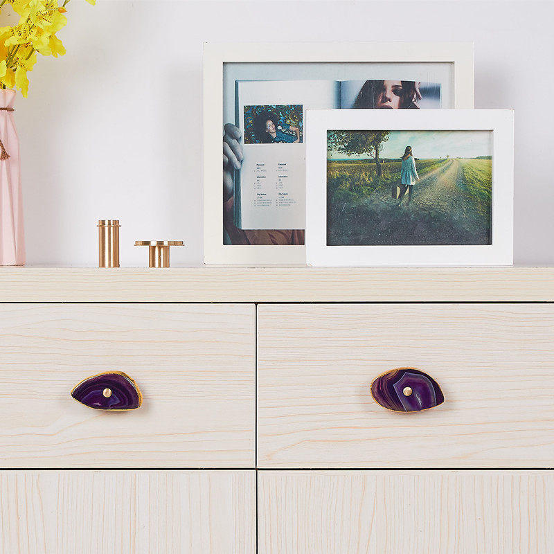Nordic brass creative handle designer cabinet drawer copper handle natural agate stone decorative cabinet small handle