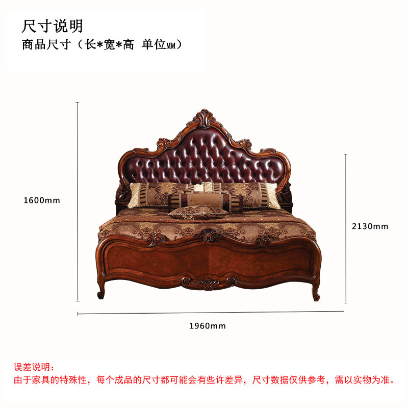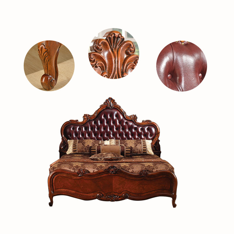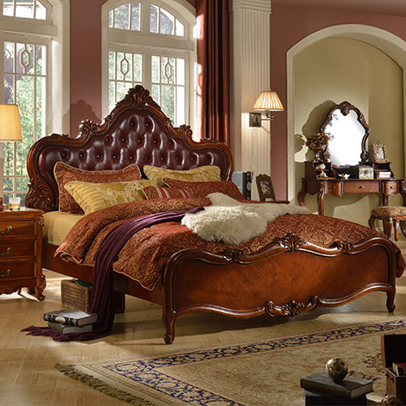 Meng Han American full solid wood genuine leather bed European style solid wood master bedroom with double bed 1 8 m net red bedroom solid wood wedding bed