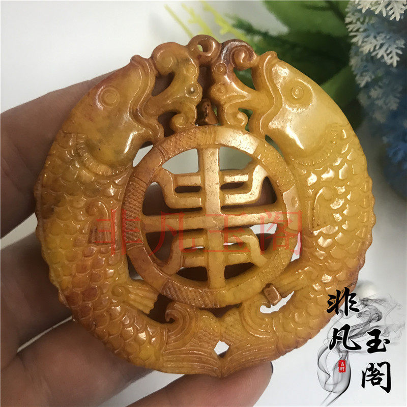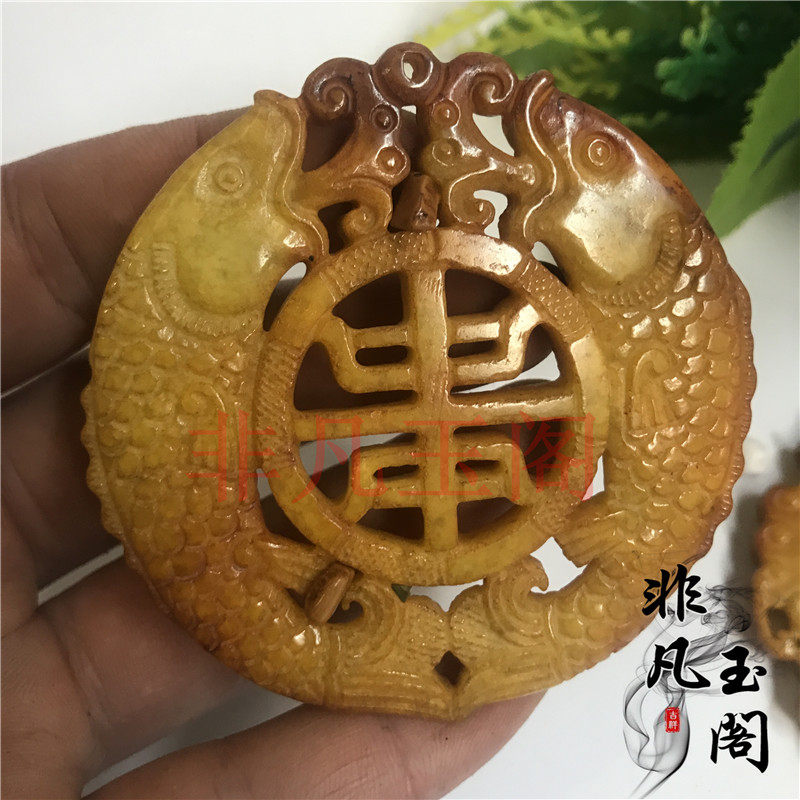Warring States packing old Jade antique antique antique collection engraved double fish jade pendant handle old Jade Wen play old objects