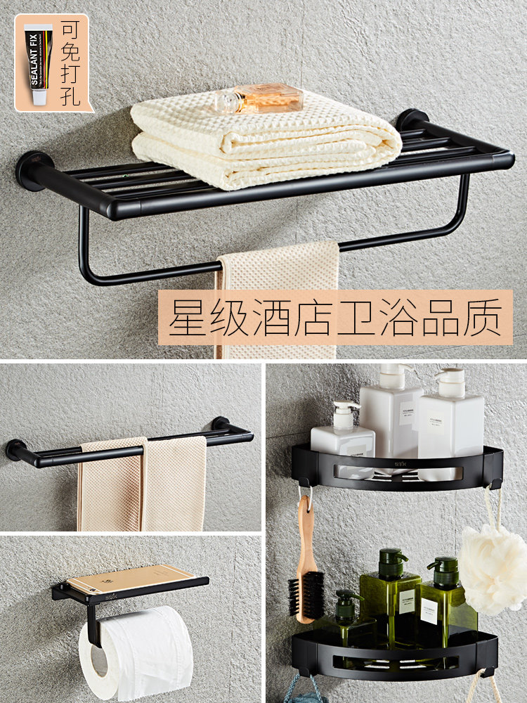 Stainless steel free-hole shelve black bath towels Pendant Package Light Lavish Nordic Weathering Makeup Room Bathroom Towels