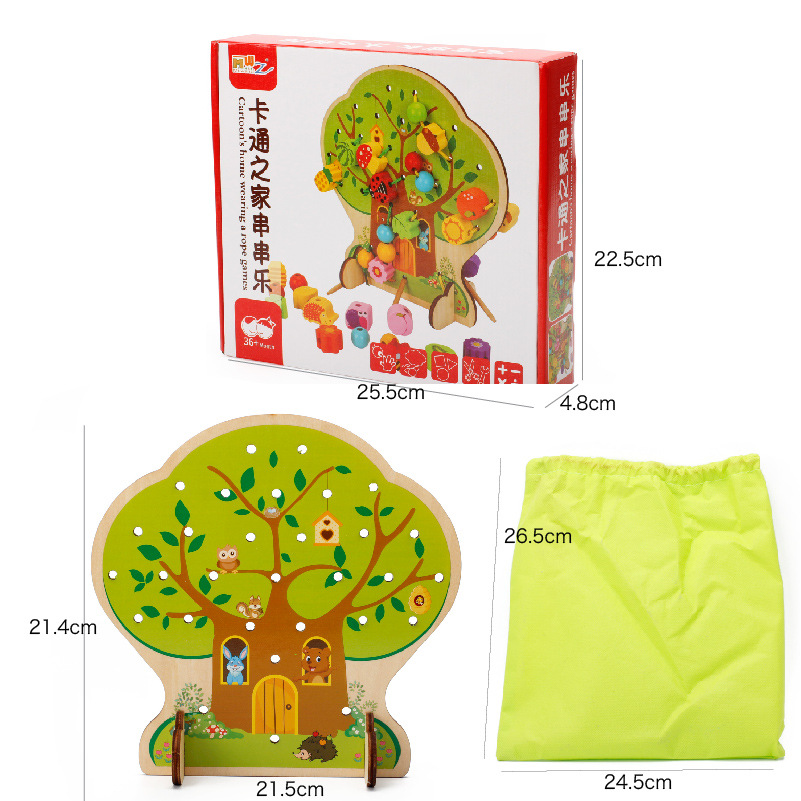 Kindergarten Toys Montessori Family Toy Baby Early Education Puzzle Strings Pearl Wear Rope Enlighten Wood Toys
