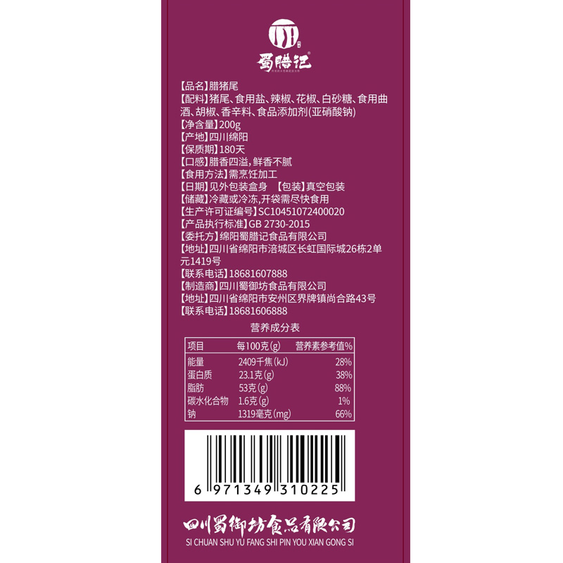 Pig tail Edible salt Monosodium glutamate pepper pepper pepper White sugar Edible koji wine spices