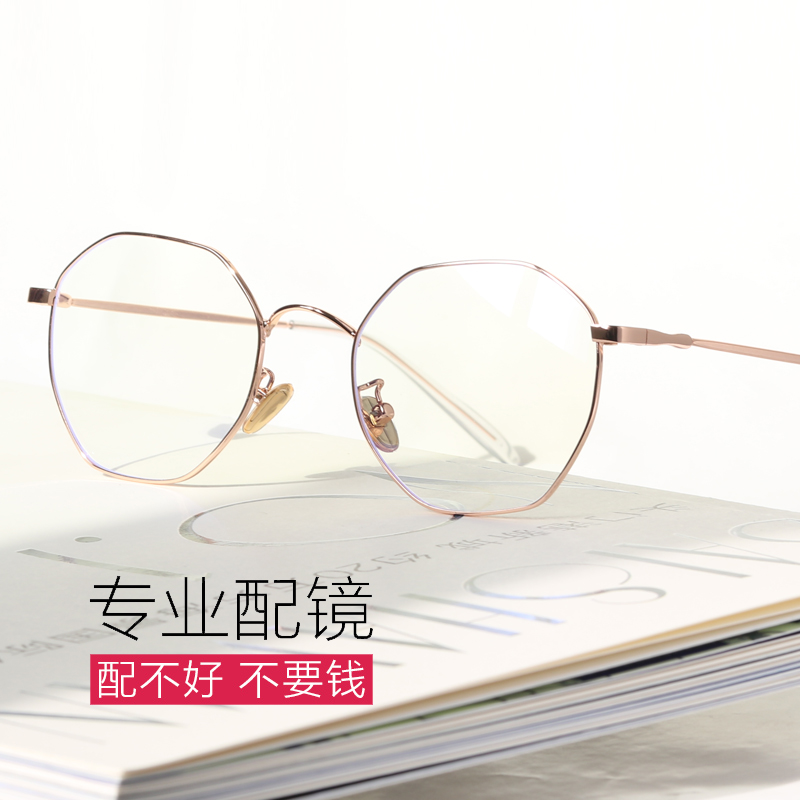 Anti-blue light radiation glasses female trendy Korean version polygonal flat mirror element face artifact net red myopia eye frame